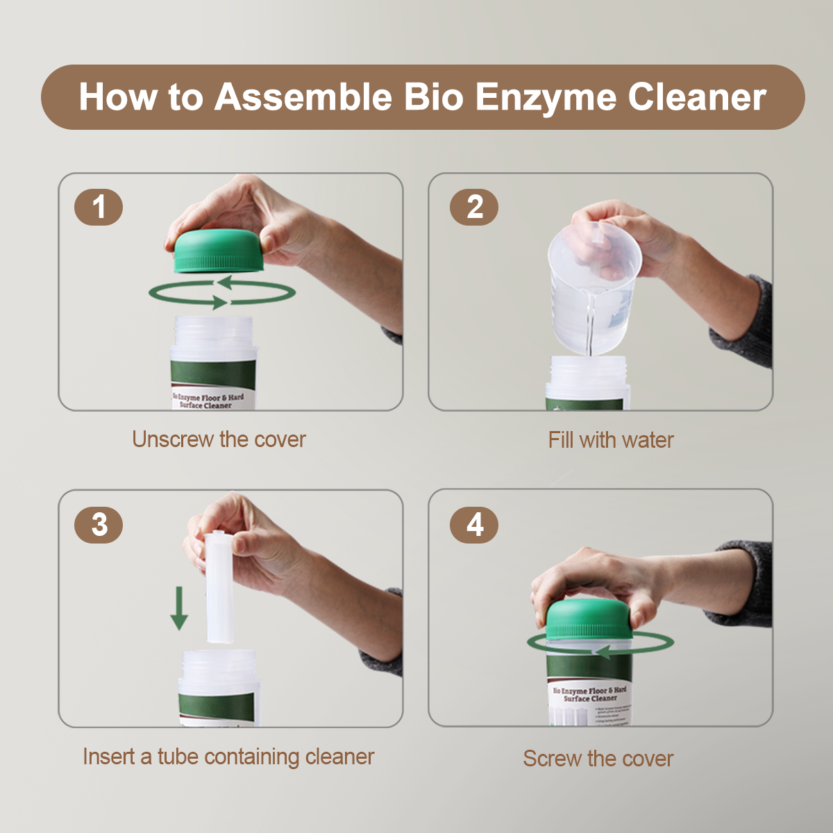 Just pop in one 10ml bio enzyme concentrate, fill it with water, and you have 22oz of natural cleaning power — ready to spray and shine.